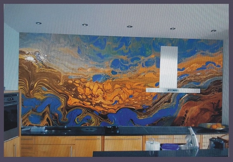 Objektmalerei präsentiert eine innovative Kollektion abstrakter Kunstwerke von Studio S Germany, die als Oberflächen für verschiedene Innenräume dienen. Die Präsentation hebt die Anwendung dieser einzigartigen, handbemalten Acrylgemälde für Küchenschränke, Rückwände, Bartheken und Tische hervor.
