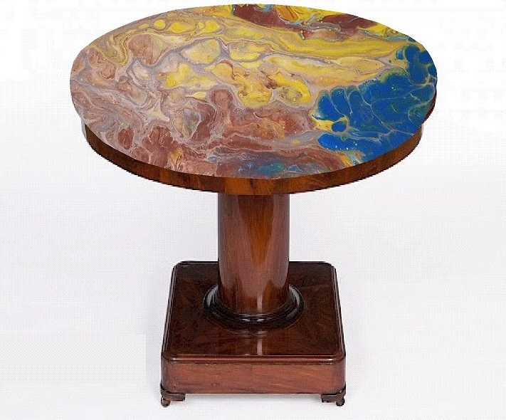 ◦ Die moderne Malerei wird zur Gestaltung von Tischplatten verwendet.